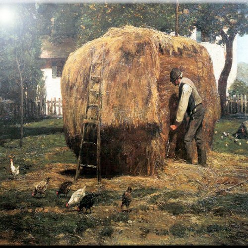 Rikki Knight RK-8intilec-3008 8" X 8" Childe Hassam Art The Barnyard Design Ceramic Art Tile