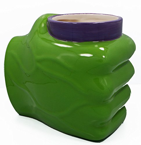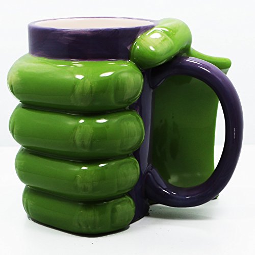 -. Brand : Marvel -. Color : Green, Purple -. EAN : 0670711147600 -. Feature : Officially Licensed by Marvel / Sculpted Ceramic Hulk Hand Mug / Holds approximately 22oz and is 5" tall / Beautifuly Designed and Painted / HANDWASH ONLY; DO NOT MICROWAVE -. Label : Surreal Entertainment -. Manufacturer : Surreal Entertainment -. Model : AVAS-HULKHAND -. PackageQuantity : 1 -. ProductGroup : Kitchen -. ProductTypeName : KITCHEN -. Publisher : Surreal Entertainment -. Size : 22 oz -. Studio : Surreal Entertainment -. Title : The Incredible Hulk Green Oversized Jumbo Hand Mug Officially Licensed Marvel Comics - 22 oz -. UPC : 670711147600