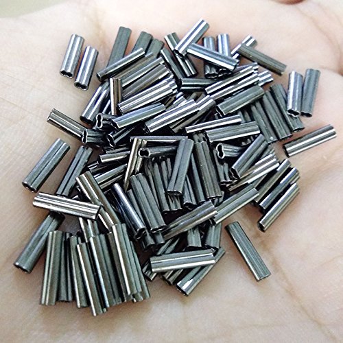 Product Description 1) Type:Double Sleeves 2) Material: 100% Brass 3) Color: Black Nickle 4) Specification: Size (Inside Dia. x Length) Outside Dia. Wall thickness Used for 0.8x10mm 1.3mm 0.25mm 0~0.6mm 1.2x10mm 1.7mm 0.25mm 0~1mm 5) Crimps Are Appxo: 10mm Long 6) High Strength 7) Great for Mono and Wire Leader When You Like Fishing 8) Quantity: 50/100/200/500pcs/lot for each size Please choose the size and quantity as you need, thank you. 9) Packaging: Reusable plastic bag 0