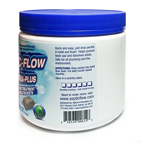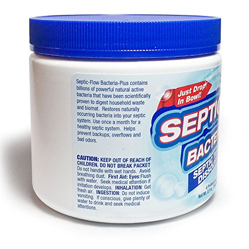 -. Brand : Septic Flow -. Feature : Septic-Flow Bacteria-Plus contains billions of powerful natural active bacteria that have been scientifically proven to digest household waste and biomat. / Restores naturally occurring bacteria into your Septic System. / Use once a month for a healthy septic system. Helps prevent backups, overflows, and odors. -. Label : Nature's Innovation -. Manufacturer : Nature's Innovation -. ProductGroup : Kitchen -. ProductTypeName : KITCHEN -. Publisher : Nature's Innovation -. Studio : Nature's Innovation -. Title : Bacteria Plus Monthly Septic System Enzyme Treatments by Septic-Flow