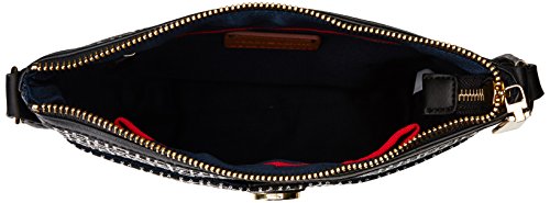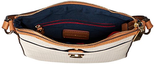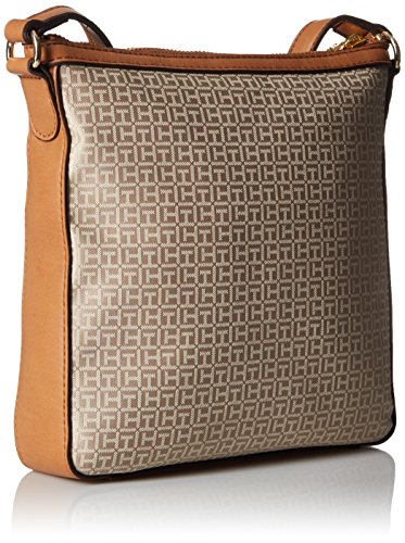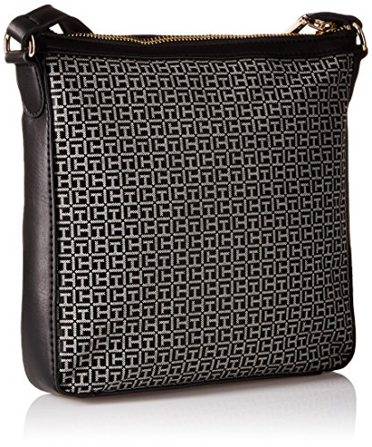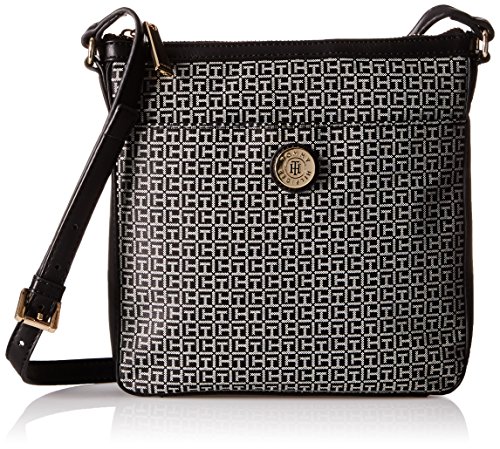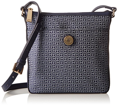 -. Binding : Apparel -. Brand : Tommy Hilfiger -. Department : womens -. Feature : Exterior slip pocket; gold hardware; signature the logo on front center; adjustable shoulder strap -. Label : Tommy Hilfiger -. Manufacturer : Tommy Hilfiger -. Model : 6934332 -. ProductGroup : Apparel -. ProductTypeName : HANDBAG -. Publisher : Tommy Hilfiger -. Studio : Tommy Hilfiger -. Title : Tommy Hilfiger Elaine Jacquard Cross Body