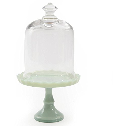 -. Feature : 5.25 inch glass cake stand with dome lid / Can be used for serving petite desserts and cakes / Features jadeite color base and glass cover with a sculpted handle / Ideal addition to your table decor for a party or other special occasion / Assembled Product Dimensions (L x W x H) 10.24 x 7.87 x 7.87 Inches. Hand wash recommended