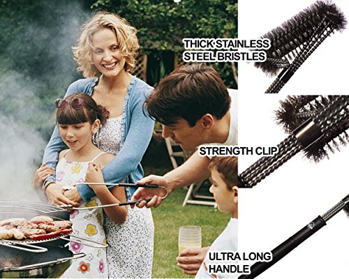 - EASIER, HASSLE-FREE CLEANING: we designed an 18 Inch long brush. This 360° rotator blade uses spiral bristles to clean the sides AND top – all at the same time. You’ll be able to clean every part of the grill, effortlessly