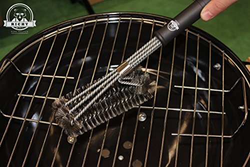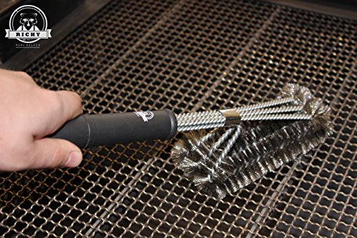 - A GRILL BRUSH BUILT TO LAST LONGER: The Richy Home Helper brush is designed and built to last. Made from stainless steel with a tough, durable plastic handle and heavy duty strength clip that keeps all the brushes packed together tight. This makes cleaning easier and doubles the lifespan