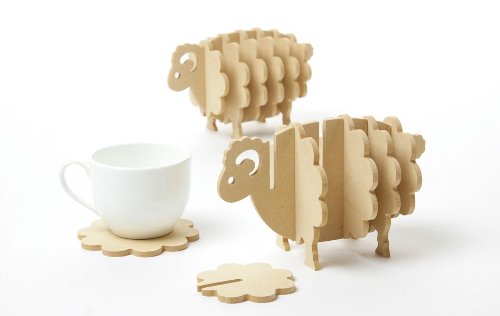 Wooden Decorative Animal Coaster Holder - Sheep (6 Coasters)