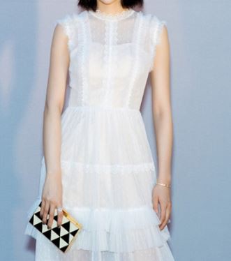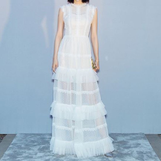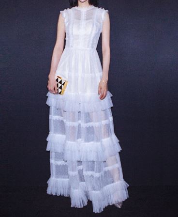 透け感のある生地のティアード風スカートが華やかなパーティードレスです。