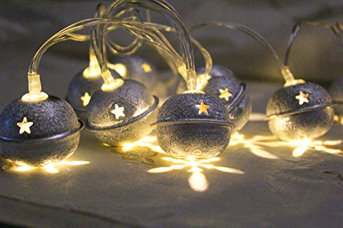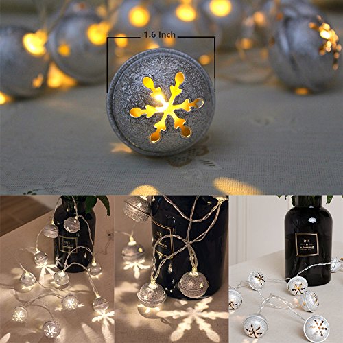 Udyr Jingle Bell LED String Lights 6.5ft 20LEDs Silver Retro Bell Holiday Fairy Battery Powered Lights for Party, Patio, Home & Outdoor Decorations, Warm White