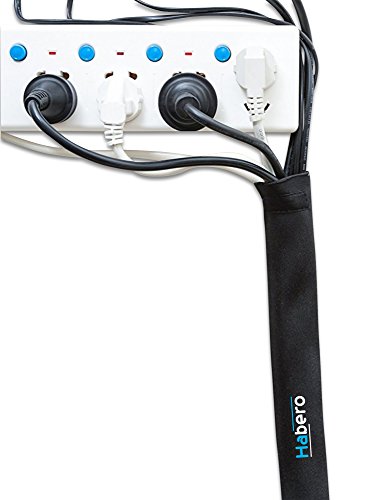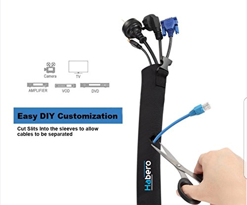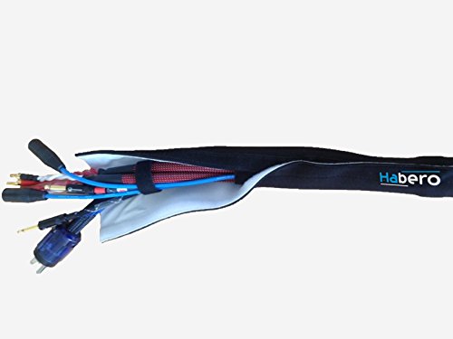Habero Cable Management Sleeve – 60 Inch (Length) 5 Inch (Width) Best Adjustable Black Neoprene Cord Organizer - Cable management clips - Habero Cable sleeve for computer PC ,TV and more.