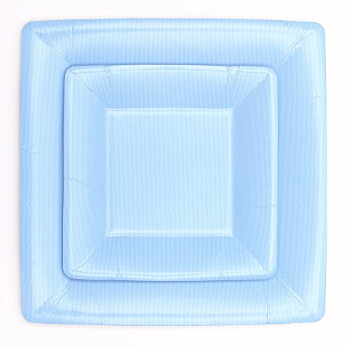 Entertaining with Caspari Grosgrain Square Salad/Dessert Plates (8 Pack), Light Blue