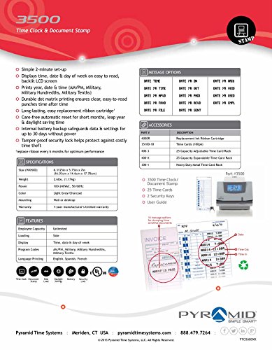 Pyramid 3500 Multi-Purpose Time Clock and Document Stamp - Made in the USA