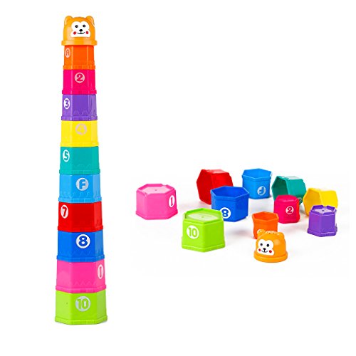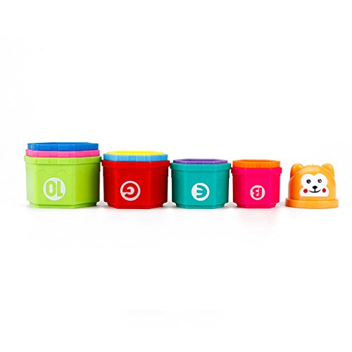 How to play:Multiple ways to play! Children love to fit them together, to stack them up to build a tower, to put things in them and take them out, to turn them over and hide things underneath.Parents teach the letters and numbers printed on the cups. Children shake the tower and make sounds.