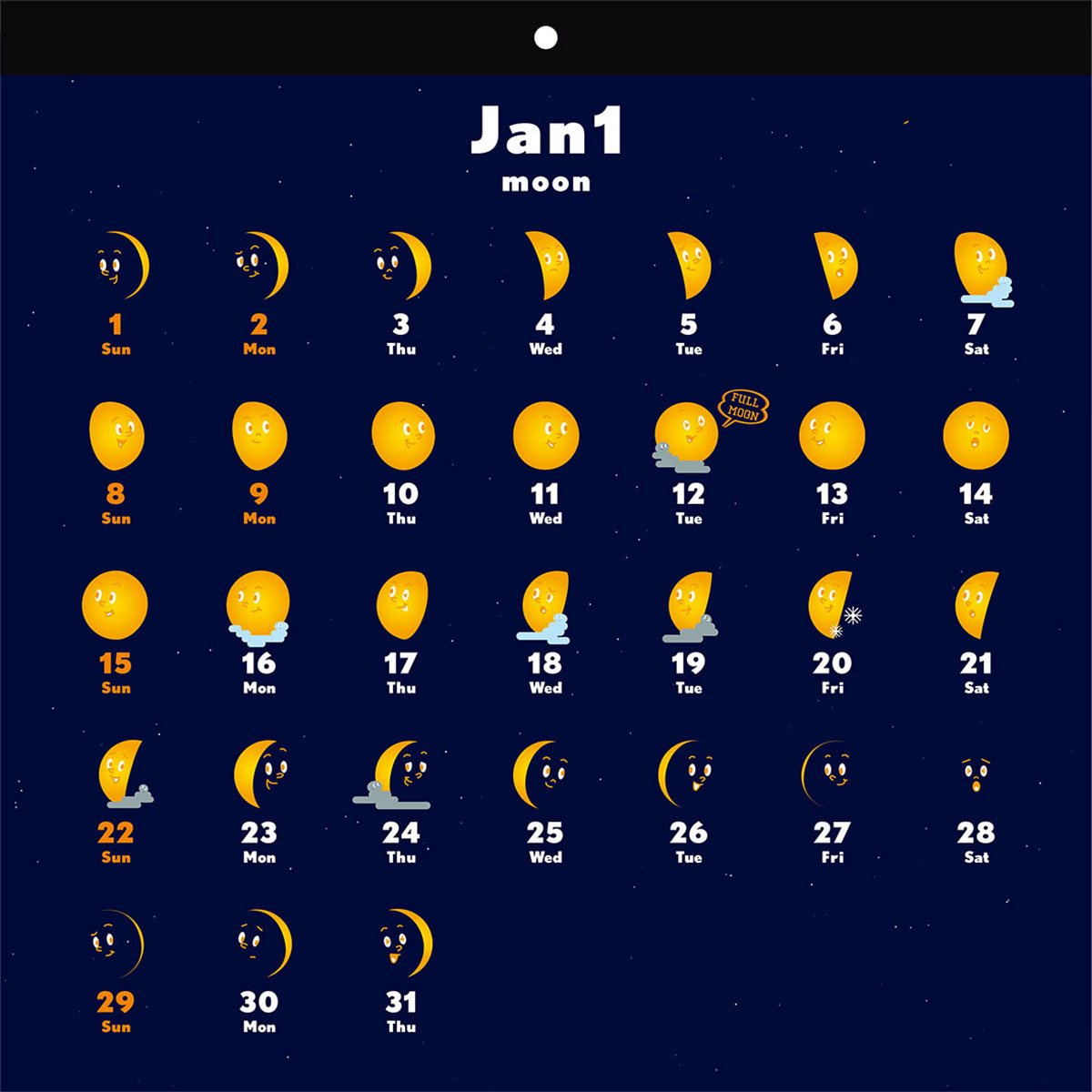 Age calendar that the moon shines at night.