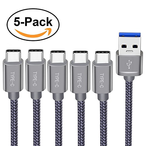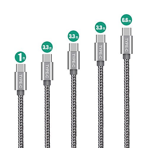 USB-C Cable, Snowkids USB 3.0 USB A to C Cable (5-PACK 3.3ftx3, 6.6ftx1, 1ftx1) Nylon Braided USB C Fast Charger for Google Pixel, LG V30 G6,Nintendo Switch, Samsung Galaxy Note 8, S8, S8 plus (Grey)