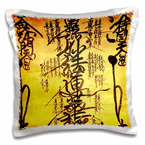 3dRose Oriental design art yellow background - Pillow Case, 16 by 16-inch (pc_53881_1)