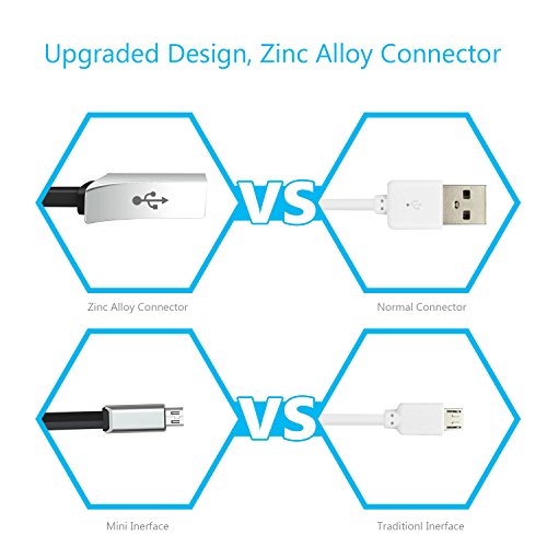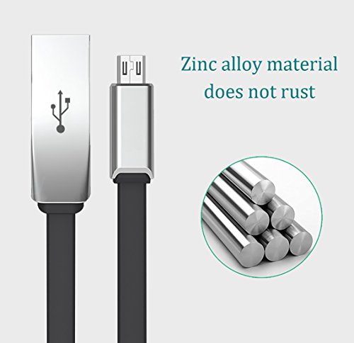 [UPGRADED PREMIUM QUALITY]: Zinc Alloy integrated plug with oxidation resistance, over 5000 life cycles. Made of most durable frosted PVC material, pretty much stronger than ordinary micro USB cables and zinc alloy material does not rust and does not oxidize which makes the cable more durable.