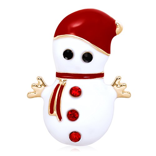 Happy Source Jewelry Delicate White and Red Enamel Snowman Brooch Pins for Christmas
