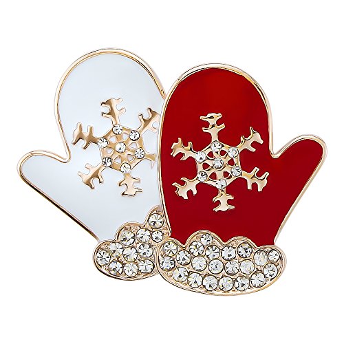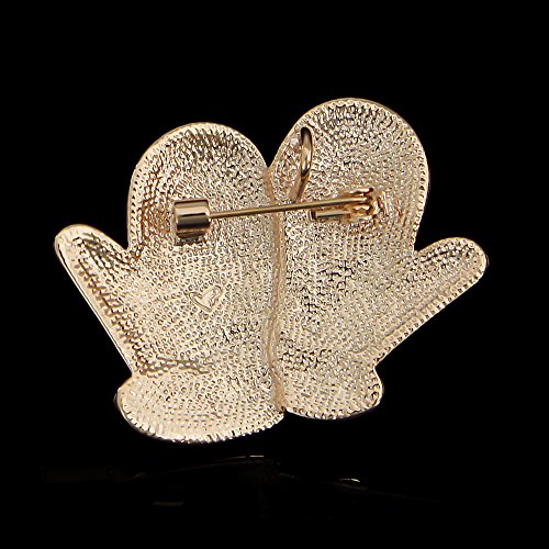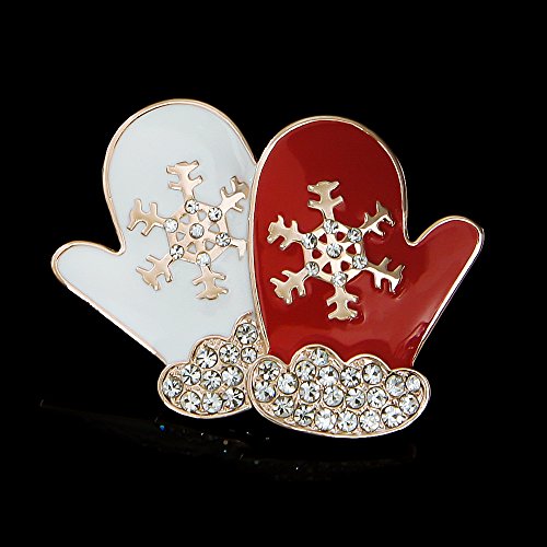 Happy Source Christmas Jewelry Rose-Gold Tone Crystal Enameled Santa Gloves Brooch Pin