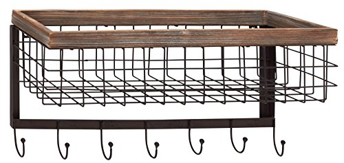Benzara Attractive Wood Metal Wall Basket Hook