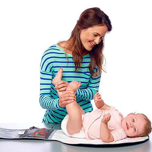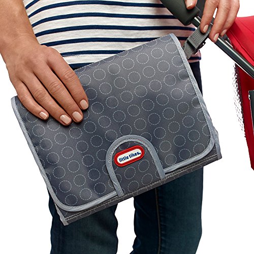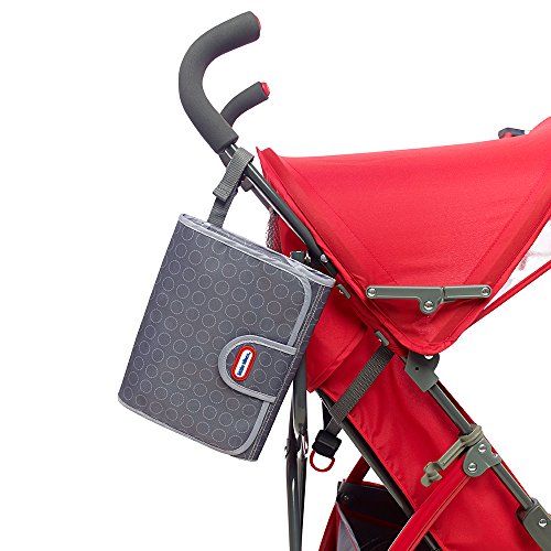 The Little Tikes baby changing pad is perfect for when you are out and about. It features an extra large cushioned changing surface to keep babies and toddlers away from dirty changing table surfaces. A convenient slot for wipes and a zippered mesh pocket keeps everything organized. The handy carry strap also allows you to clip it on to strollers so show off its cool design. Super easy to clean and waterproof fabric.