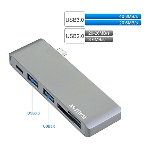 【Multiple Ports】: Multiple Ports, easily expand your single USB C adapter to: two USB 3.0 ports, a USB Type-C charging port, a SD card slot and a Micro SD card slot. Easily accessing your media via the hub and no drivers are required, provides a great convenience for you.