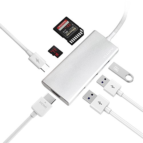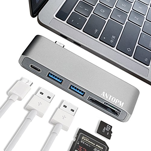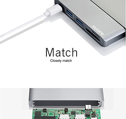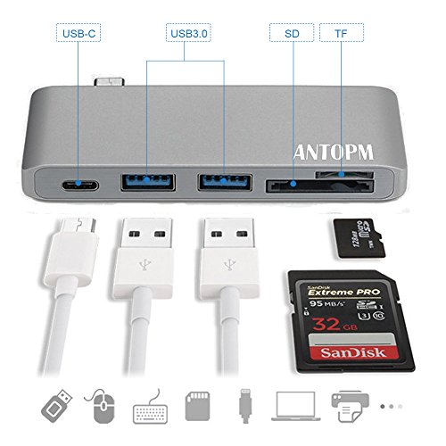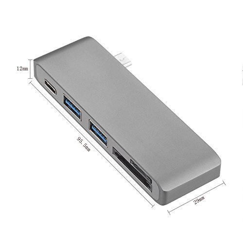 Specification: Material: aluminum alloy Rated voltage: 5V Operating current: 150-180mA Smart load voltage / current: 14.5V / 2A, 30W Transfers speed: up to 5Gbps Product Size: 95.5mm*25mm*12mm Temperature: (working environment) 0 ℃-50 ℃; (Storage environment) -20 ℃-75 ℃ Humidity: (working environment) 40%-90% (non-condensation); (Storage environment) 20% -95% (noncondensate) Note: Do not insert two different SD/TF cards at the same time. Features: Practical Design - Owns 5 ports - two USB 3.0 ports, a USB Type-C charging port, a SD card slot and a Micro SD card slot, our usb c adapter can meet all your different requirements, and the perfect complement to Apple computers and all other type-c devices. Compact Size - Our USB C multiport adapter is easy to put in your purse, pocket or backpack by the portable size. Simple and lightweight, it can be used at anywhere you want, perfect for using in office or at home, giving us more convenience. USB 3.0 Ports - It supports a high speed transfer, it can up to 5Gbps and make your work to be more efficiency, with pass through charging port, you can fast charge your macbook or other type-c devices. Package includes: 1×Type C HubFeature