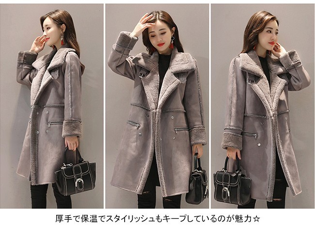 | 商品名 | セーム革コート レディース ムートンコート 裏起毛コート 秋冬ジャケット アウター 厚手コート ロングジャケット 裏ボア ビッグカラー 2018春冬新作 |