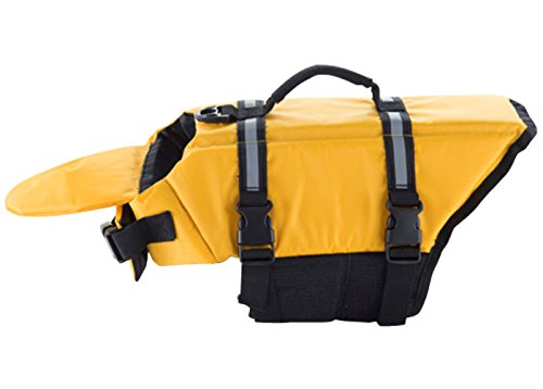 -. Title : Dog Life Jacket with Extra Padding Chin Float,Reflective,Pet Preserver Aquatic Safety Vest with Adjustable Buckles,Dog Safety Life Coat for Swimming,Boating,Hunting