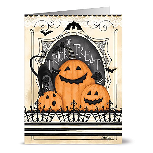 Product Description Celebrate Halloween with these trick or treat Jack-O-Lanterns. Cards have a high quality glossy exterior and are blank inside. Festive envelopes are included. 0