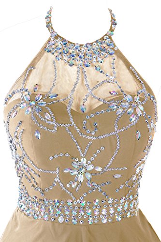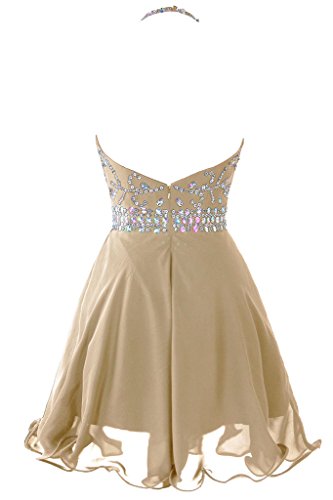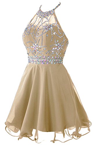 Main Features: Chiffon, Halter, Beading, Crystal, Built in bra, Backless, Zipper back, Piping, Short/Above knee length