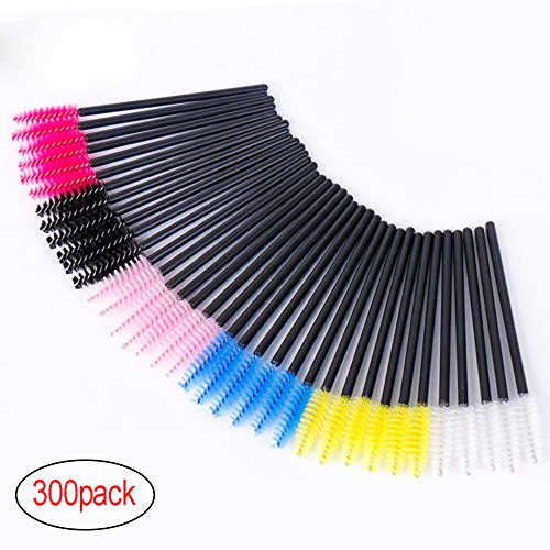 Adecco LLC 300 Pieces Multicolor Disposable Mascara Wands Eyelash Eye Lash Brush Makeup Applicators Kit, 6 Colors