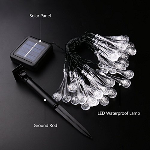 BAOANT Solar String Lights Fairy lights 20Ft 30 LED Water Drop String Lights Starry Lights for Garden Home Wedding Patio Summer Festival Christmas lights Indoor Outdoor Use(Multi-color)