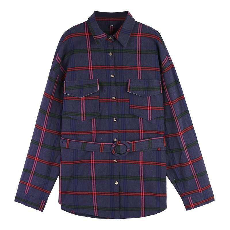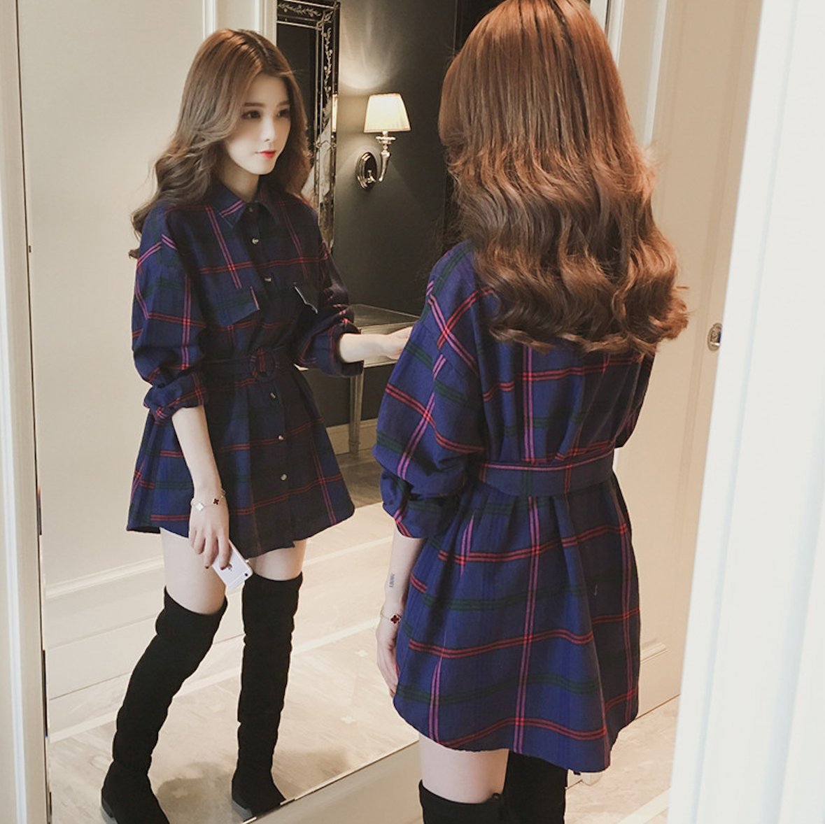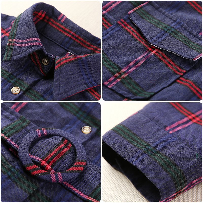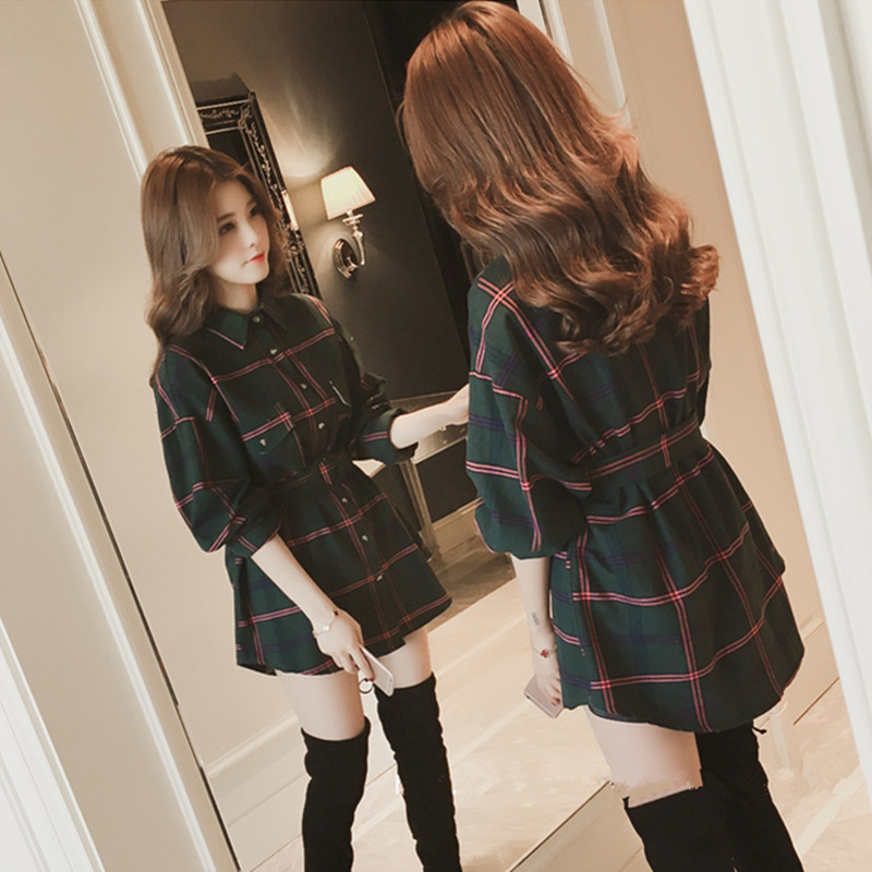 大人可愛いチェック柄のミニ丈シャツワンピース。