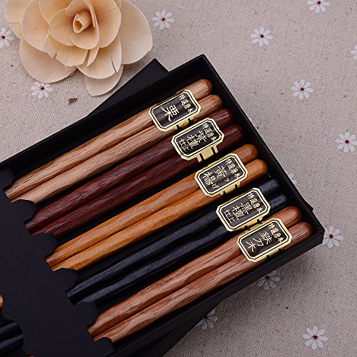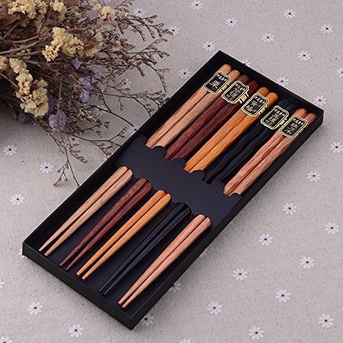 Zealor 5 Pairs Hardwood Chopsticks Set, with 5 Assorted Colors Natural Wooden Chopsticks