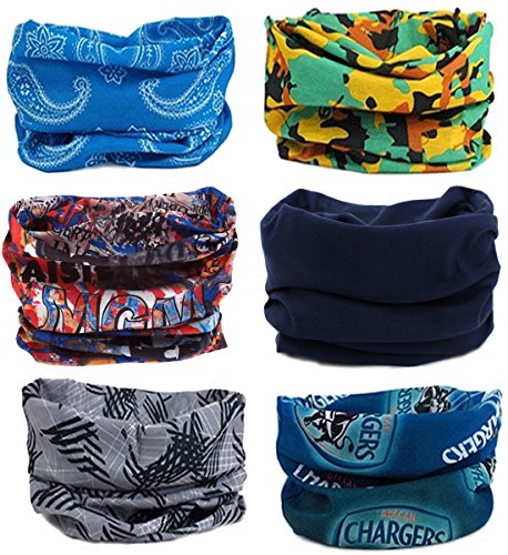 SmilerSmile 6pcs Assorted Seamless Outdoor Sport Bandanna Headwrap Scarf Wrap, 12 in 1 High Elastic Magic Headband & Collars Muffler Scarf Face Mask with UV Resistance