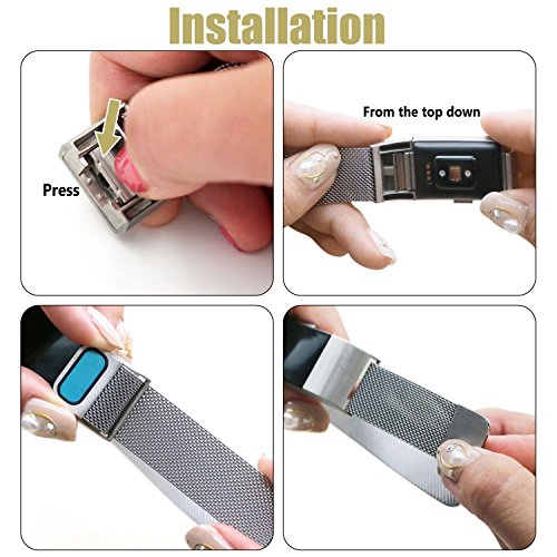Band For Fitbit Charge 2,Stainless Steel Milanese Loop Metal Replacement Bracelet Strap with Unique Magnet Lock for Fitbit Charge 2 HR Fitness Accessories Wristband