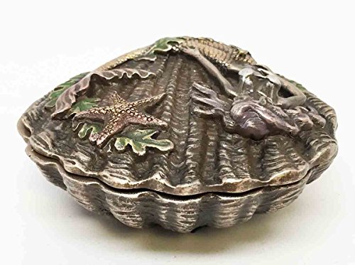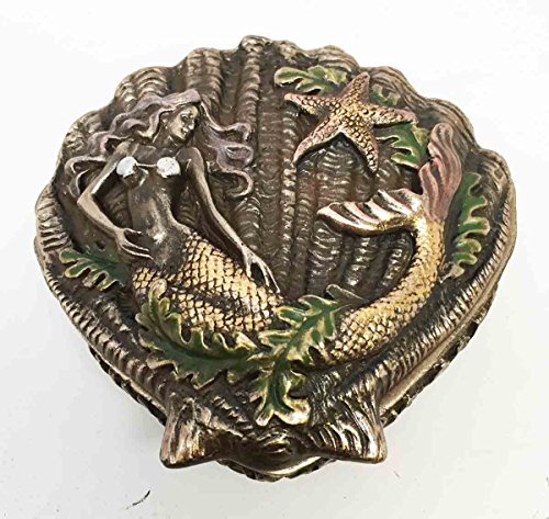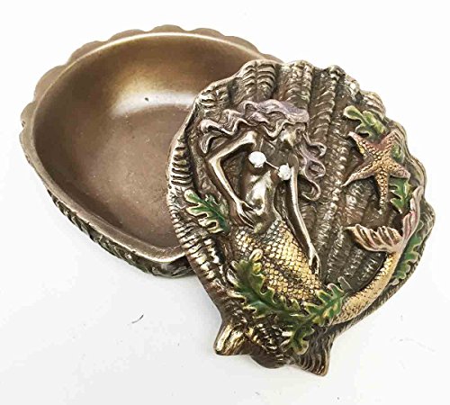 Beautiful Ocean Siren Mermaid With Starfish Shell Shaped Jewelry Box Figurine