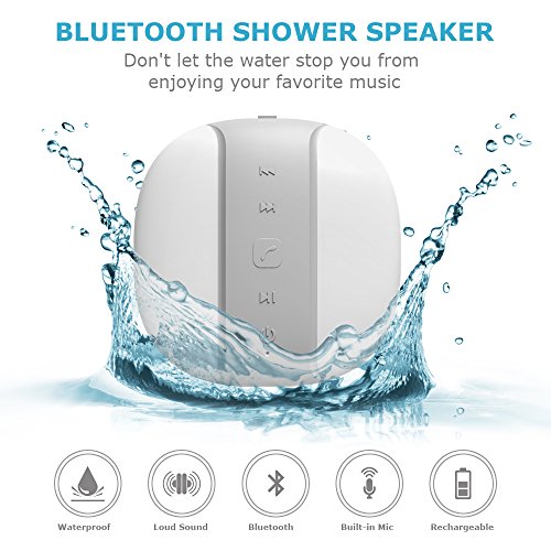 -. Feature : Amazingly Loud Waterproof Speaker - Built-in Passive Subwoofer for Outstanding Bass. / Easy to Control Your Music - Play/Pause, Switch Tracks, Adjust Volume, Answer & Make Phone Calls right from your Shower! / Bluetooth 3.0 Wireless Connectivity - Works Wirelessly with any device including Android & iPhones. / Rechargeable Battery - Supports up to 6hrs+ of Playback Time. / Ideal for Indoor and Outdoor - Enjoy your favorite Music at the Beach, Pool, Boat, Shower, Bathtub, Kitchen and more.