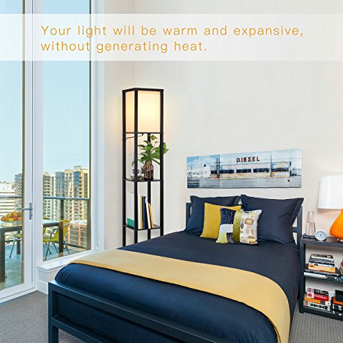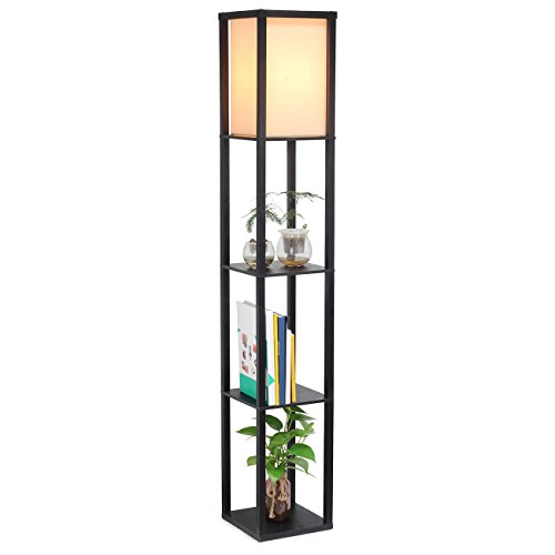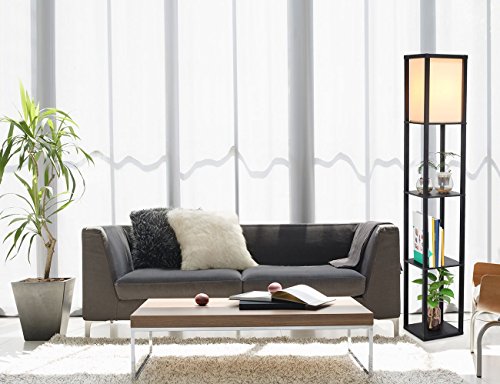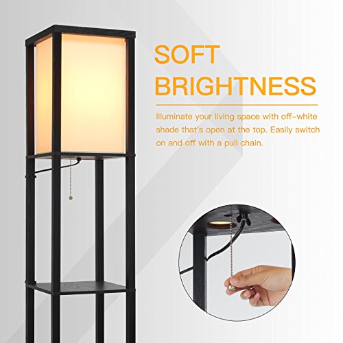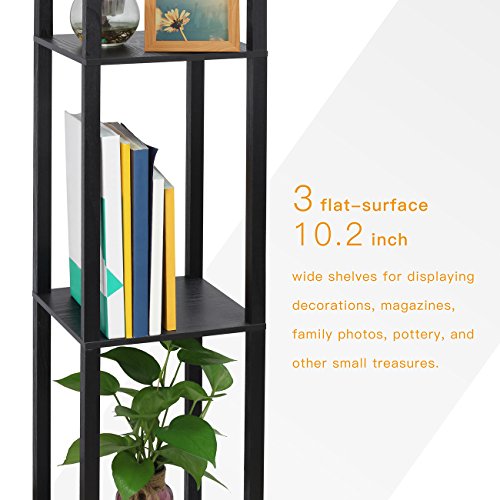 SHINE HAI Shelf Floor Lamp, Shade Diffused Light Source with Open Box Display Shelves, 63inch Modern Mood Lighting for Bedroom and Living Room, Black