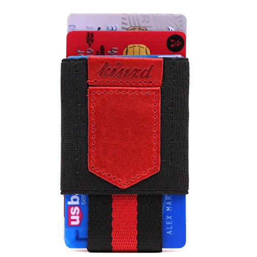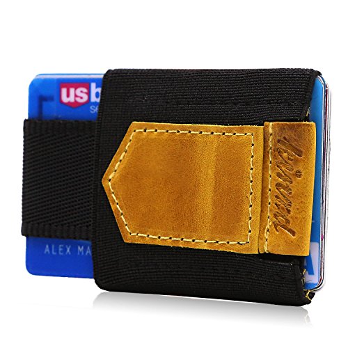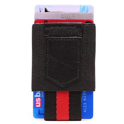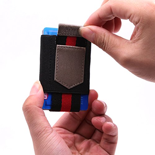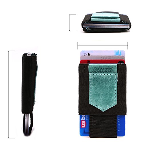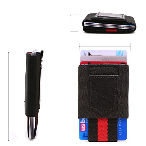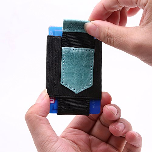 -. Feature : Genuine Leather and Medical Grade Elastic / Slim profile and easy access: 1 Main compartment, and the upside-down has 1card/cash slot and key/coin pouch. With Genuine leather pull tab, it is Easy to pull your cards out. / Fit Cards/Cash/Key/Coin: The main slot can hold up to 10 cards and a few bills; the upside-down small pouch could fit a key/few coins securely, and won't fall out. It is great for people who take few cashes. / Minimalist front pocket wallet: simple and sleek design, Good stitch, Durable, can last long time / Fits perfectly in front/back pocket, bags or purse, hold the cards /cash/key tightly.