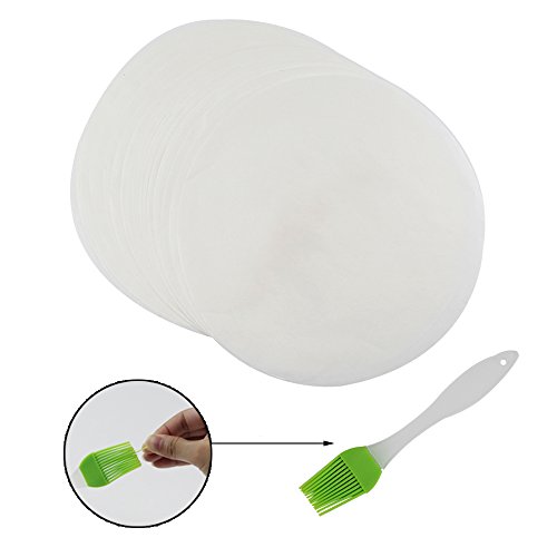 SHAN RUI 9" Dia Round Parchment Paper for Cooking and Baking, 100 Sheets, with 1 Silicone Brush