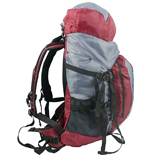 -. Feature : Double zipper front pocket for Hydration pouch (does NOT include bladder), Two draw straps in front which allow for expansion, / Zippered storage top flap / pocket for easy access, Mesh pocket on both side, / The entire pack is constructed of two layers of material, Two Aluminum Internal Frame Stays on back panel for more comfort and support, / Two draw straps in front which allow for expansion, Very comfortable EVA handle, Fully packed back panel, should strap and waist strap for more comfort, / Adjustable waist belt with quick released buckle, Chest strap with quick released buckle, Plenty of extra straps and loops for hooking climbing gear, Fits 20-48 waist,