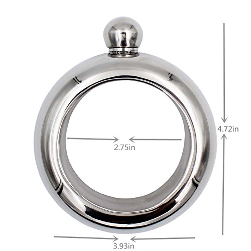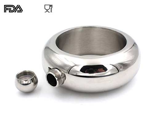 *Name: YDDDD bracelet bangle flask. *Weight: 6.8 ounces. *Capacity: 3.5oz. *Material: food grade 304 stainless steel. *Size: out DIA:3.9 inches, Inner DIA:2.75 inches,height:1.42 inches.