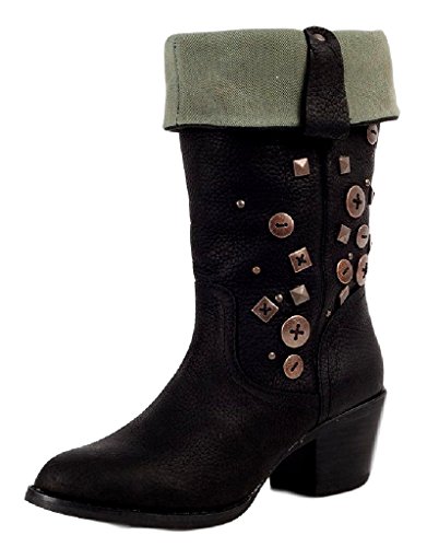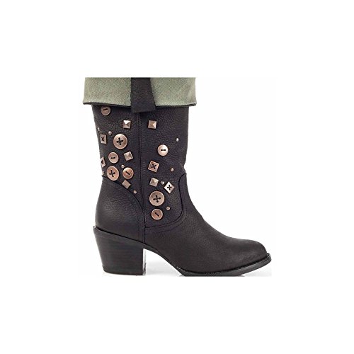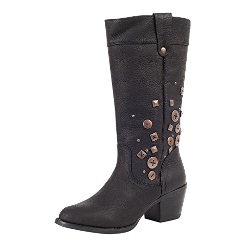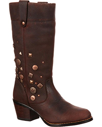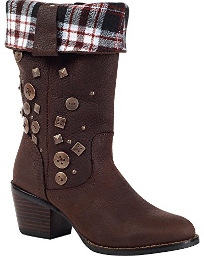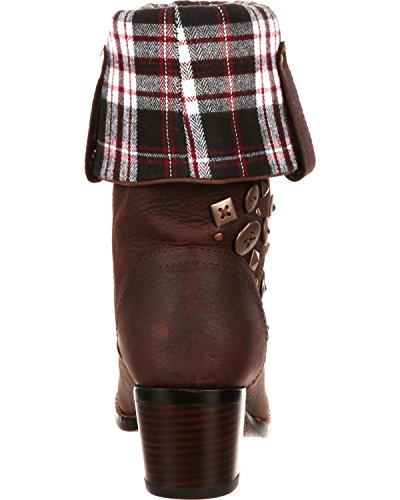 Studio : Durango Publisher : Durango Binding : Apparel Product Description It's time to turn down and show off your style for the holidays This sassy fashion boot by Durango is made of genuine leather with button accents on the 12" shaft. Its collar folds down to reveal cozy plaid fabric that is perfect for fall and winter These trendy women's boots include a 2 1/4" heel to give you some height. 0