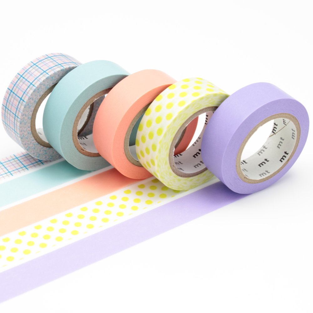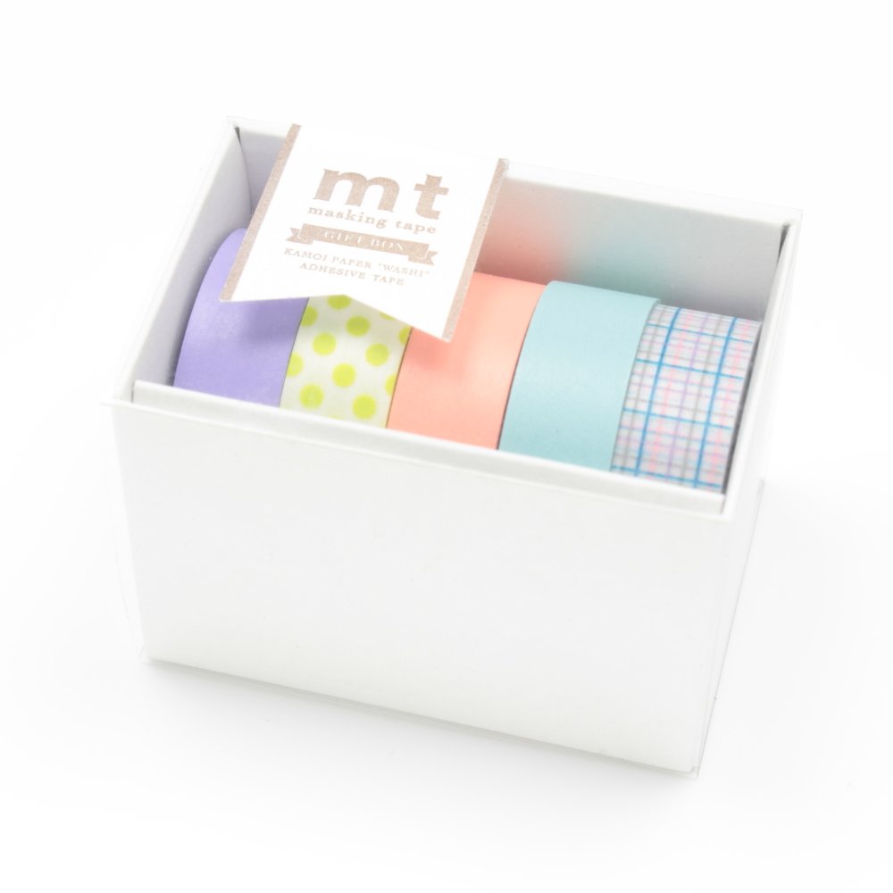 1 X Kamoi kakoshi Masking Tape Gift Box Pastel - 15mm Width - 10mm Roll Box In 5 Pieces