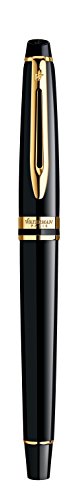 -. Feature : Generous, cigar-shaped silhouette brings smart Parisian styling to your business communications / Glossy black lacquer finish with gold-plated trim and clip / Medium two-tone 23K gold and stainless steel nib with engraved Waterman maker's mark / Presented in a Waterman gift box, made in France and assembled by hand / Fine writing bundle includes: Waterman fountain pen, gift box, blue ink cartridge, 8 long black ink cartridges and warranty information (S0951660 & S0712991)
