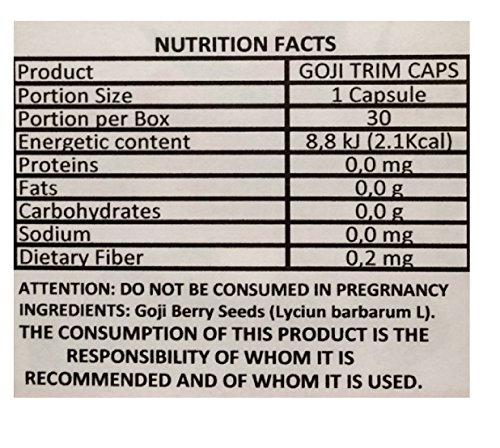 Goji Trim Weight Loss 30 Capsules/ Semillas De Baya De Goji Capsulas