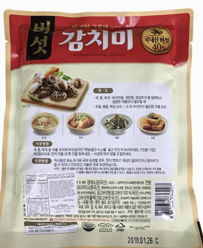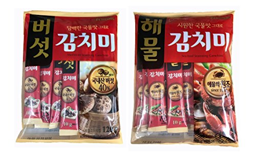 -. Title : Gamchimi Seasoning Mix; 3 Seafood Gamchimi + 2 Mushroom Gamchimi 3 Packs(120g); Each pack has 10 piece(10 ea X 12g)