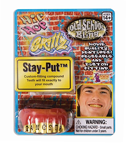 -. Binding : Apparel -. Brand : Forum Novelties -. Department : mens -. Feature : Gangsta Grillz costume accessory / Stay-Put custom fitting compound molds to your mouth for the perfect fit / Reusable; hand wash and air dry / Additional accessories and costume pieces sold separately / Made by Forum Novelties, a leader in costumes and novelty products for more than 30 years -. Genre : Makeup/FX -. IsAdultProduct : 0 -. Label : Forum Novelties Costumes -. Manufacturer : Forum Novelties Costumes -. PackageQuantity : 1 -. ProductGroup : Apparel -. ProductTypeName : ADULT_COSTUME -. Publisher : Forum Novelties Costumes -. Studio : Forum Novelties Costumes -. Title : Forum Novelties Men's Gangsta Grillz