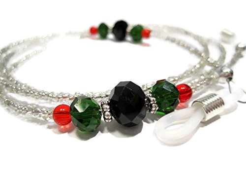 Studio : ATLanyards Publisher : ATLanyards Binding : Health and Beauty Product Description This Christmas themed eyeglass holder is a subtle way to show your holiday cheer. The decorative beads feature a mix of black, green, and red. When paired with 2mm silver seed beads you get Christmas charm that can still match with any outfit. The simple yet beautiful design is a great way to keep your glasses close at hand. The eyeglass holder is lightweight and durable making it perfect for daily comfortable use. (Please note the dime in the last product photo is shown for bead size comparison purposes only and is not included in the purchase of this item.) 0