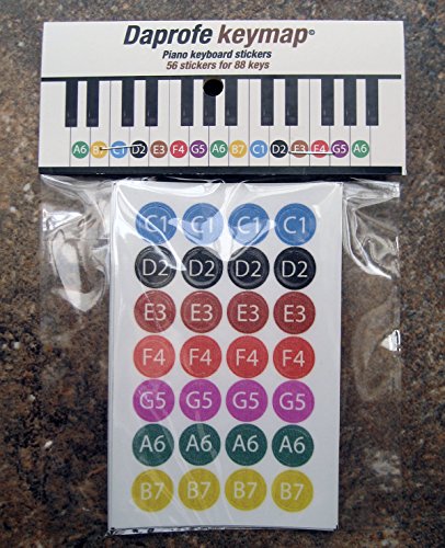-. Brand : Daprofe -. EAN : 0616450624972 -. Feature : P.R.Inted on high quality German Made Oracal removable vinyl and laminated withstand hard playing and perspiration ink will never wear off / Fits full size keyboards 56 stickers to cover the white keys for 88 note keyboards / Dots measure approximatly .5 inch across in size / Keymaps are also great to work out songwriting ideas, progressions and complicated chord relationships. / Master the keyboard today -. Model : MUS266919 -. MPN : MPN -. PackageQuantity : 1 -. PartNumber : MPN -. ProductGroup : Musical Instruments -. ProductTypeName : INSTRUMENT_PARTS_AND_ACCESSORIES -. Title : Daprofe Piano Keyboard Keymap Notemap Removable Round Vinyl Stickers -. UPC : 616450624972